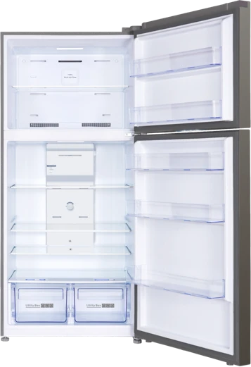 מקרר מקפיא עליון בנפח 540 ליטר עם No Frost ומערכת Multi Air Flow. כולל מגירות מווסתות לחות, מדפי זכוכית ותכנון פנימי רחב לאחסון מגוון.