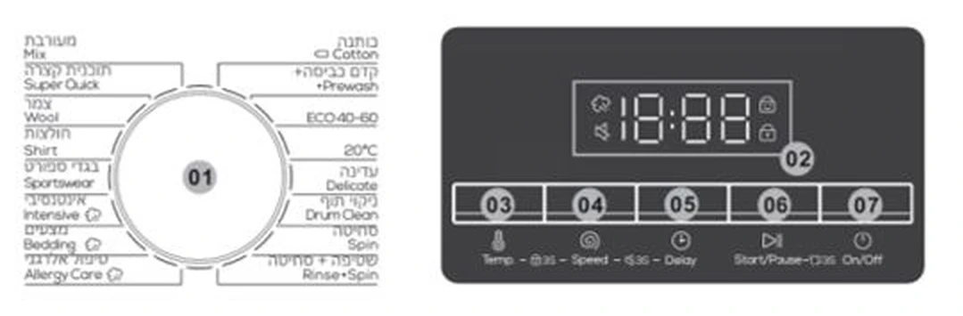 מכונת כביסה בנפח 6 ק"ג עם מנוע BLDC Inverter חסכוני ועמיד לאורך זמן. פאנל תצוגה בעברית להפעלה נוחה, מגוון תוכניות כביסה כולל מעורבת, מהירה, צמר, חולצות, מצעים, תוכנית לבעלי אלרגיה וכותנה. כוללת תצוגת LED, אפשרות להשהיית הפעלה 3–24 שעות, הוספת פריטים במהלך הכביסה, פעולה שקטה וחיסכון באנרגיה. מהירות סחיטה עד 1000 סל"ד. דלת גדולה ונעילת ילדים.
